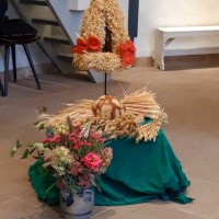 Durch die Beschränkungen der Pandemie wurde in diesen Jahren jeweils der Erntedankgottesdienst der evangelischen Kirchengemeinde mit einem festlich geschmückten Handwagen, unserer Erntekrone und weiteren Erntegaben dekorativ unterstützt.